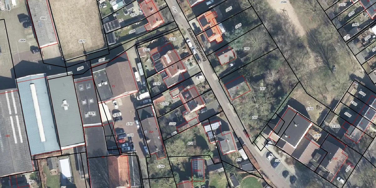 Gebruik de zoekbalk of klik op een perceel voor informatie over de adressen binnen dit perceel.