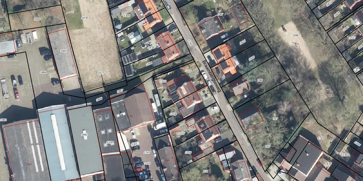 Gebruik de zoekbalk of klik op een perceel voor informatie over de adressen binnen dit perceel.
