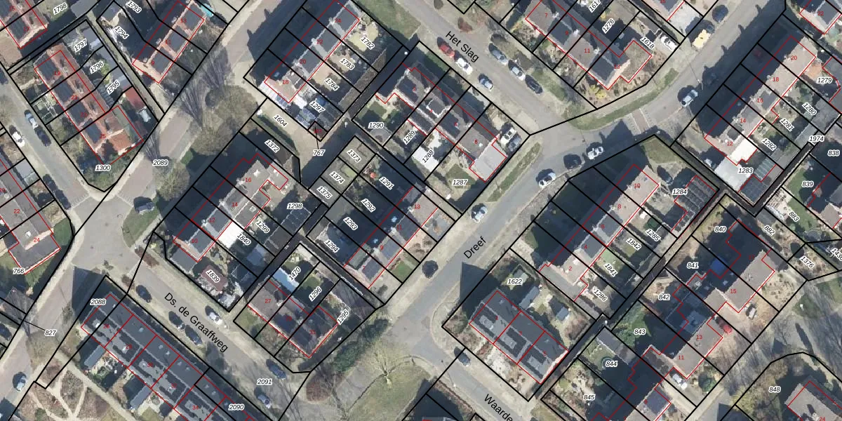 Het perceel waarop Dreef 13 staat heeft een oppervlakte van 163 m². Dit is een middelgroot perceel. De perceeloppervlakte wordt geregistreerd door het Kadaster. Gedetailleerde informatie over de maten van dit perceel kunt u vinden in het rapport Kadastrale kaart met maatvoering van Dreef 13.