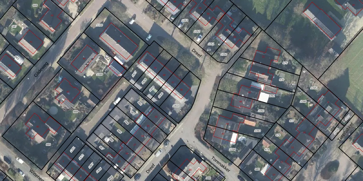 Het perceel waarop Dreef 35 staat heeft een oppervlakte van 323 m². Dit is een groot perceel. De perceeloppervlakte wordt geregistreerd door het Kadaster. Gedetailleerde informatie over de maten van dit perceel kunt u vinden in het rapport Kadastrale kaart met maatvoering van Dreef 35.
