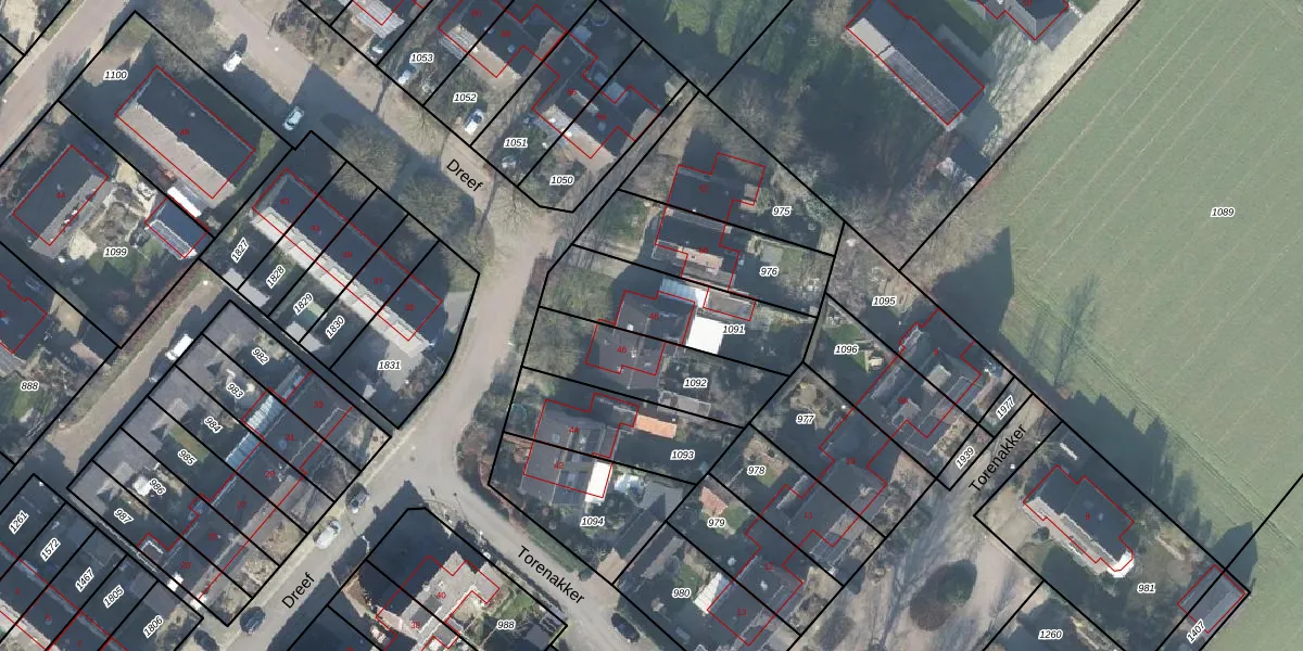 Het perceel waarop Dreef 48 staat heeft een oppervlakte van 405 m². Dit is een groot perceel. De perceeloppervlakte wordt geregistreerd door het Kadaster. Gedetailleerde informatie over de maten van dit perceel kunt u vinden in het rapport Kadastrale kaart met maatvoering van Dreef 48.