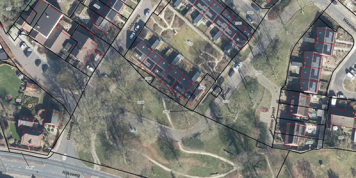 Het perceel waarop Dreef 5 staat heeft een oppervlakte van 2650 m². Dit is een zeer groot perceel. De perceeloppervlakte wordt geregistreerd door het Kadaster. Gedetailleerde informatie over de maten van dit perceel kunt u vinden in het rapport Kadastrale kaart met maatvoering van Dreef 5.