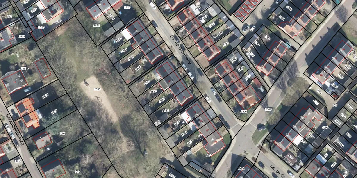 Gebruik de zoekbalk of klik op een perceel voor informatie over de adressen binnen dit perceel.