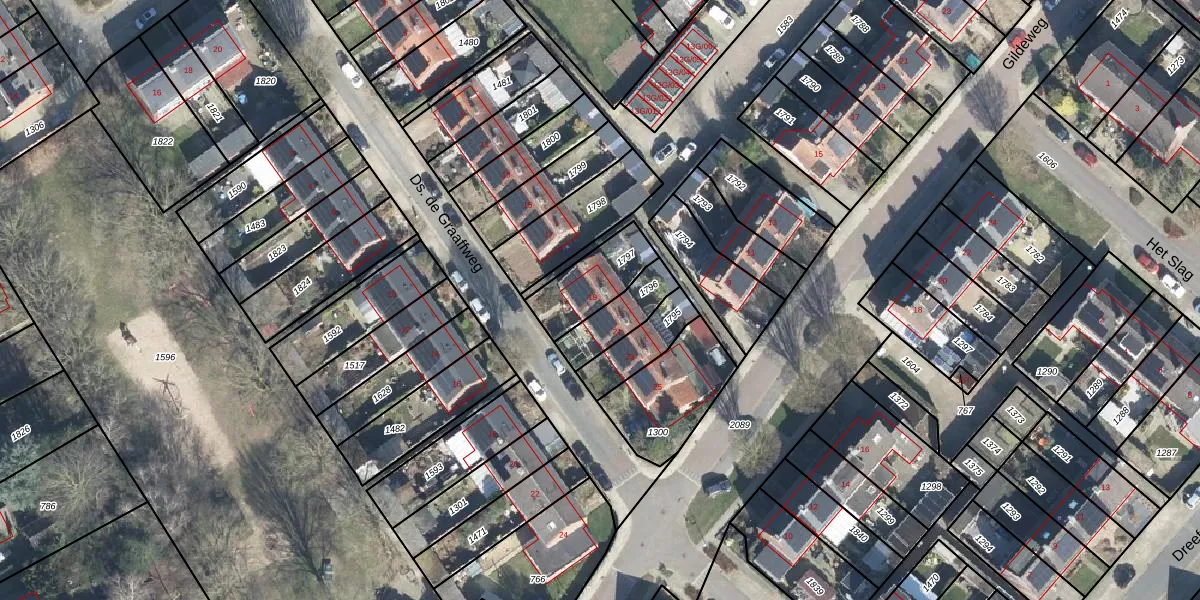 Het perceel waarop Ds. de Graaffweg 19 staat heeft een oppervlakte van 182 m². Dit is een middelgroot perceel. De perceeloppervlakte wordt geregistreerd door het Kadaster. Gedetailleerde informatie over de maten van dit perceel kunt u vinden in het rapport Kadastrale kaart met maatvoering van Ds. de Graaffweg 19.