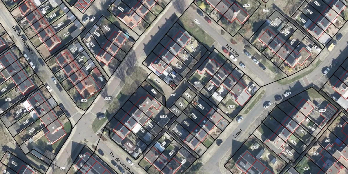 Gebruik de zoekbalk of klik op een perceel voor informatie over de adressen binnen dit perceel.