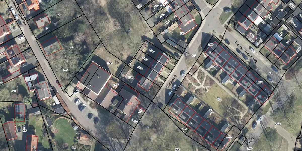 Gebruik de zoekbalk of klik op een perceel voor informatie over de adressen binnen dit perceel.