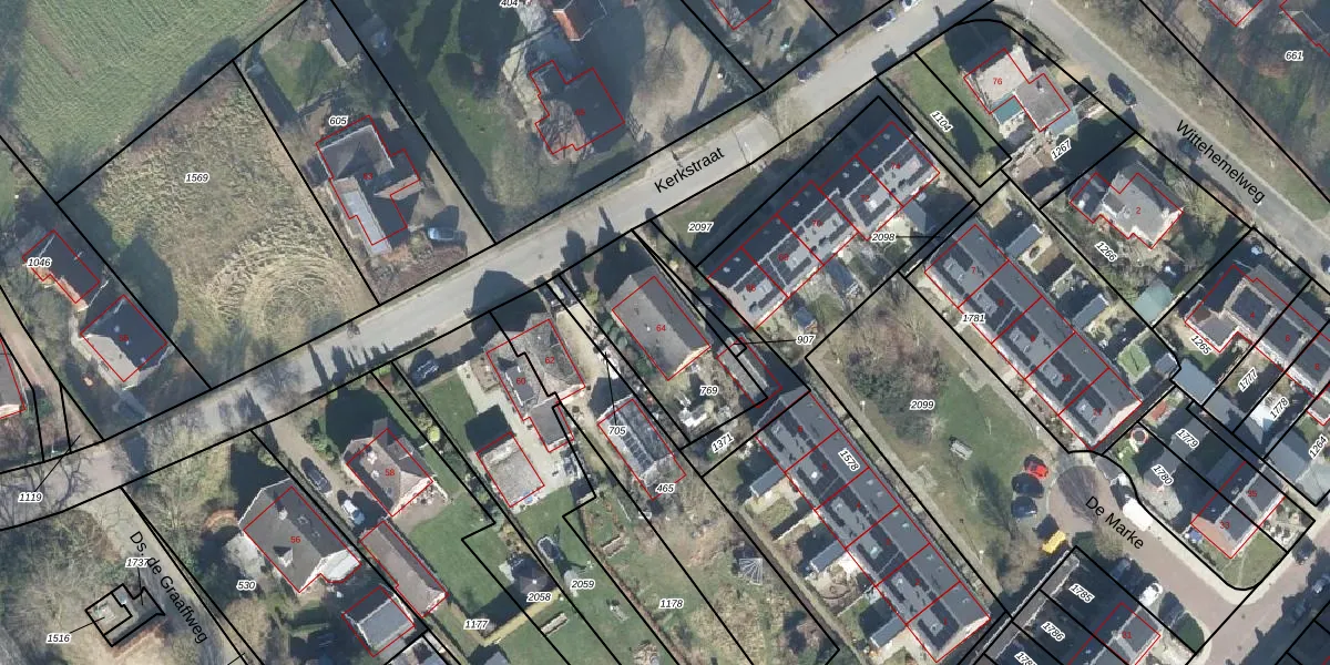 Het perceel waarop Kerkstraat 64 staat heeft een oppervlakte van 424 m². Dit is een groot perceel. De perceeloppervlakte wordt geregistreerd door het Kadaster. Gedetailleerde informatie over de maten van dit perceel kunt u vinden in het rapport Kadastrale kaart met maatvoering van Kerkstraat 64.