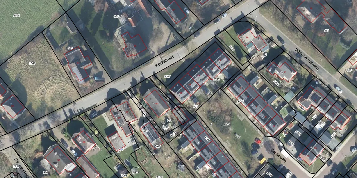 Het perceel waarop Kerkstraat 66 staat heeft een oppervlakte van 2231 m². Dit is een zeer groot perceel. De perceeloppervlakte wordt geregistreerd door het Kadaster. Gedetailleerde informatie over de maten van dit perceel kunt u vinden in het rapport Kadastrale kaart met maatvoering van Kerkstraat 66.