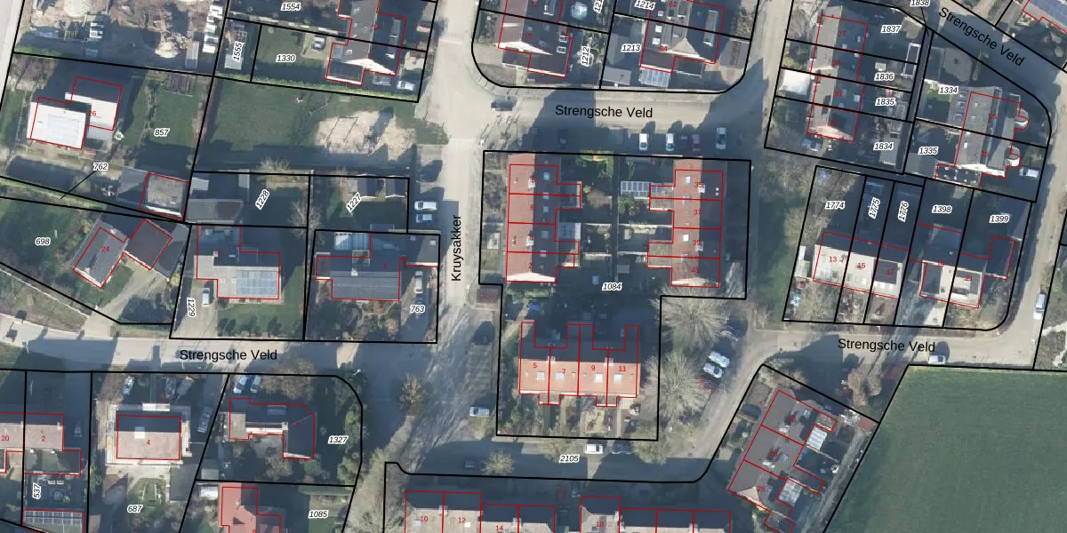 Het perceel waarop Kruysakker 2 staat heeft een oppervlakte van 2095 m². Dit is een zeer groot perceel. De perceeloppervlakte wordt geregistreerd door het Kadaster. Gedetailleerde informatie over de maten van dit perceel kunt u vinden in het rapport Kadastrale kaart met maatvoering van Kruysakker 2.