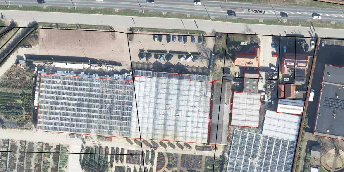 Rijksweg 14-A is gelegen op kadastraal perceel KPL02G964. Deze kadastrale aanduiding is uniek en wordt gebruikt door het Kadaster om eigendomsrechten en andere zakelijke rechten vast te leggen. Het perceel maakt onderdeel uit van de kadastrale gemeente Keppel.