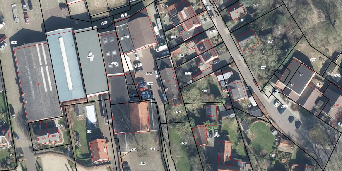 Gebruik de zoekbalk of klik op een perceel voor informatie over de adressen binnen dit perceel.