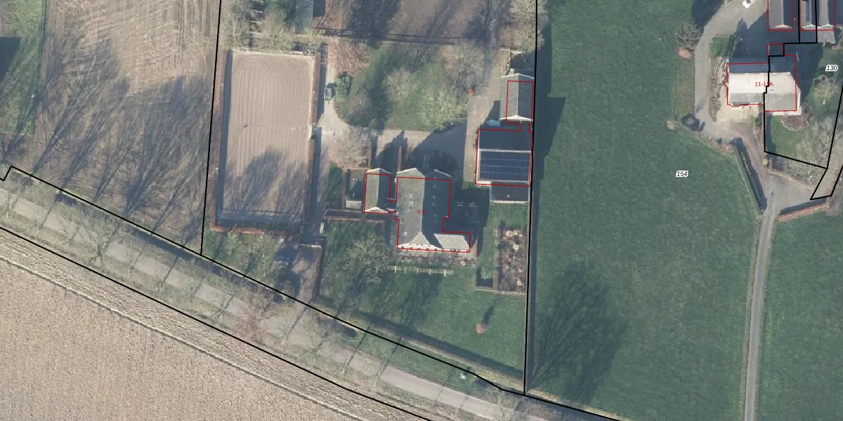 Het perceel waarop Roomstraat 9 staat heeft een oppervlakte van 2,3 ha. Dit is een zeer groot perceel. De perceeloppervlakte wordt geregistreerd door het Kadaster. Gedetailleerde informatie over de maten van dit perceel kunt u vinden in het rapport Kadastrale kaart met maatvoering van Roomstraat 9.
