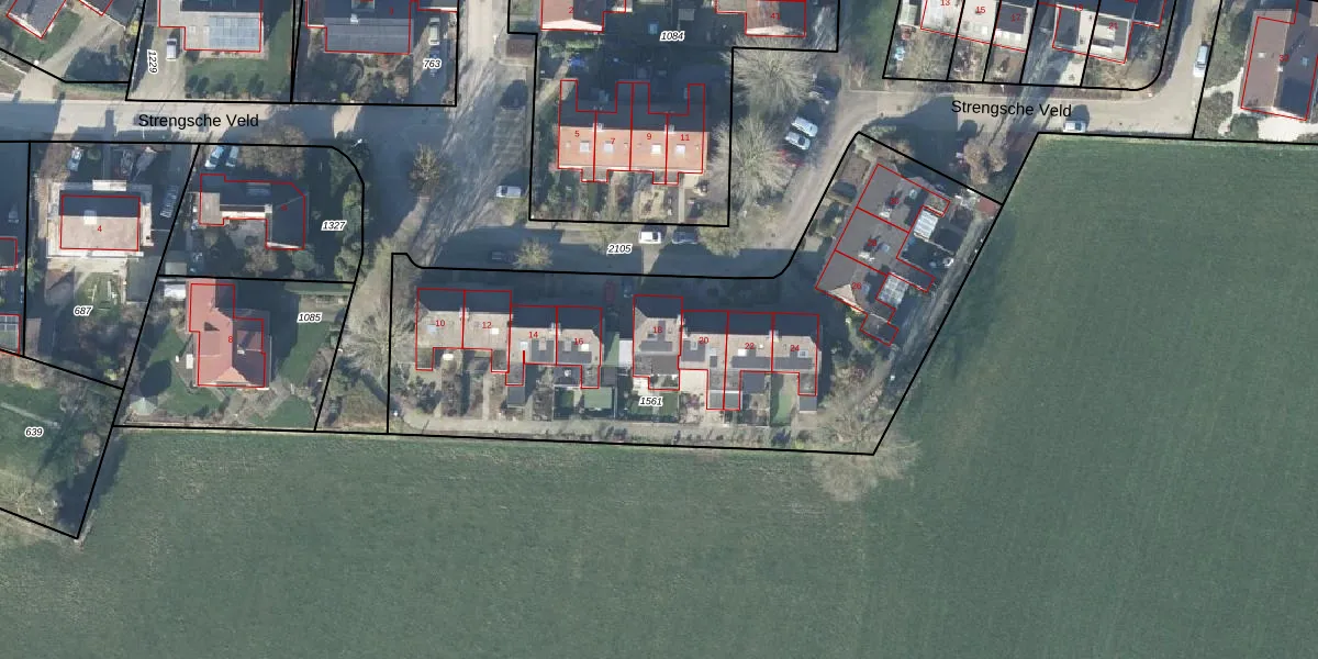 Strengsche Veld 18 is gelegen op kadastraal perceel KPL02I1561. Deze kadastrale aanduiding is uniek en wordt gebruikt door het Kadaster om eigendomsrechten en andere zakelijke rechten vast te leggen. Het perceel maakt onderdeel uit van de kadastrale gemeente Keppel.
