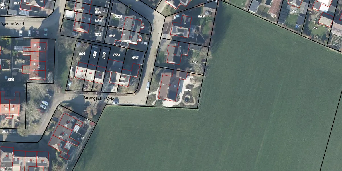 Het perceel waarop Strengsche Veld 32 staat heeft een oppervlakte van 626 m². Dit is een groot perceel. De perceeloppervlakte wordt geregistreerd door het Kadaster. Gedetailleerde informatie over de maten van dit perceel kunt u vinden in het rapport Kadastrale kaart met maatvoering van Strengsche Veld 32.