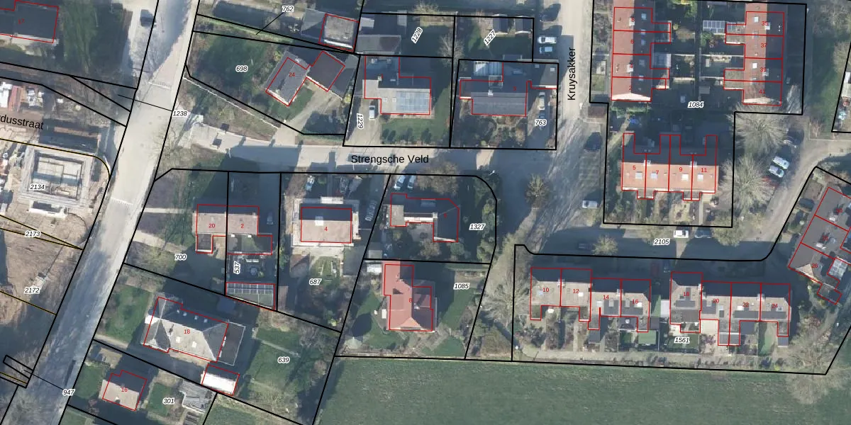 Strengsche Veld 6 is gelegen op kadastraal perceel KPL02I1327. Deze kadastrale aanduiding is uniek en wordt gebruikt door het Kadaster om eigendomsrechten en andere zakelijke rechten vast te leggen. Het perceel maakt onderdeel uit van de kadastrale gemeente Keppel.