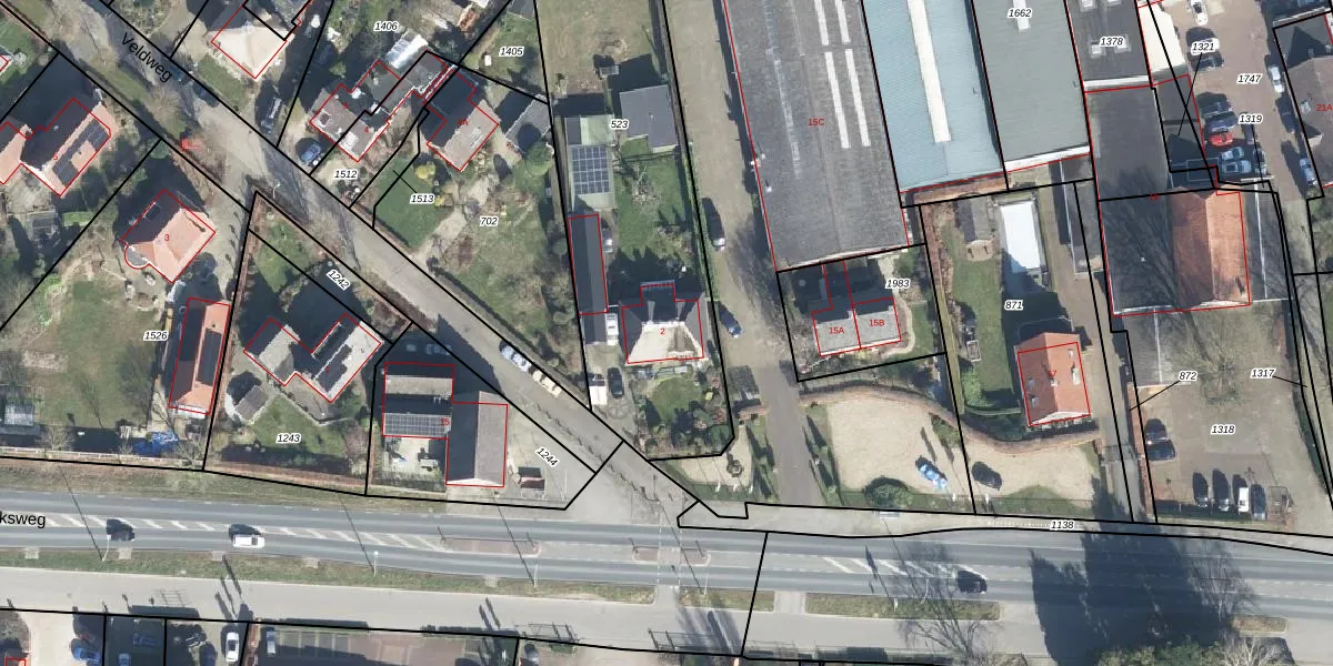 Het perceel waarop Veldweg 2 staat heeft een oppervlakte van 1838 m². Dit is een zeer groot perceel. De perceeloppervlakte wordt geregistreerd door het Kadaster. Gedetailleerde informatie over de maten van dit perceel kunt u vinden in het rapport Kadastrale kaart met maatvoering van Veldweg 2.