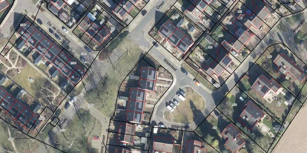 Het perceel waarop Waardeel 2 staat heeft een oppervlakte van 1032 m². Dit is een zeer groot perceel. De perceeloppervlakte wordt geregistreerd door het Kadaster. Gedetailleerde informatie over de maten van dit perceel kunt u vinden in het rapport Kadastrale kaart met maatvoering van Waardeel 2.