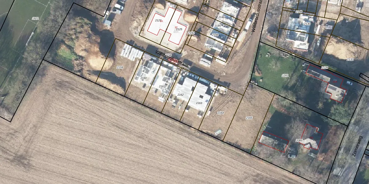 Gebruik de zoekbalk of klik op een perceel voor informatie over de adressen binnen dit perceel.