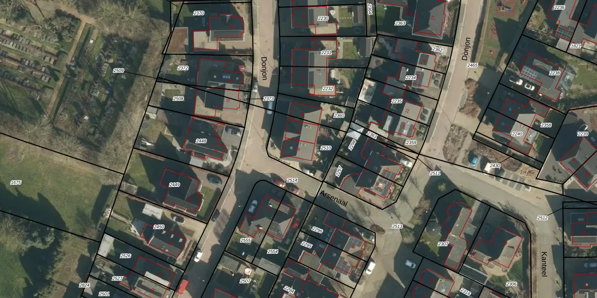 Het perceel waarop Donjon 49 staat heeft een oppervlakte van 383 m². Dit is een groot perceel. De perceeloppervlakte wordt geregistreerd door het Kadaster. Gedetailleerde informatie over de maten van dit perceel kunt u vinden in het rapport Kadastrale kaart met maatvoering van Donjon 49.