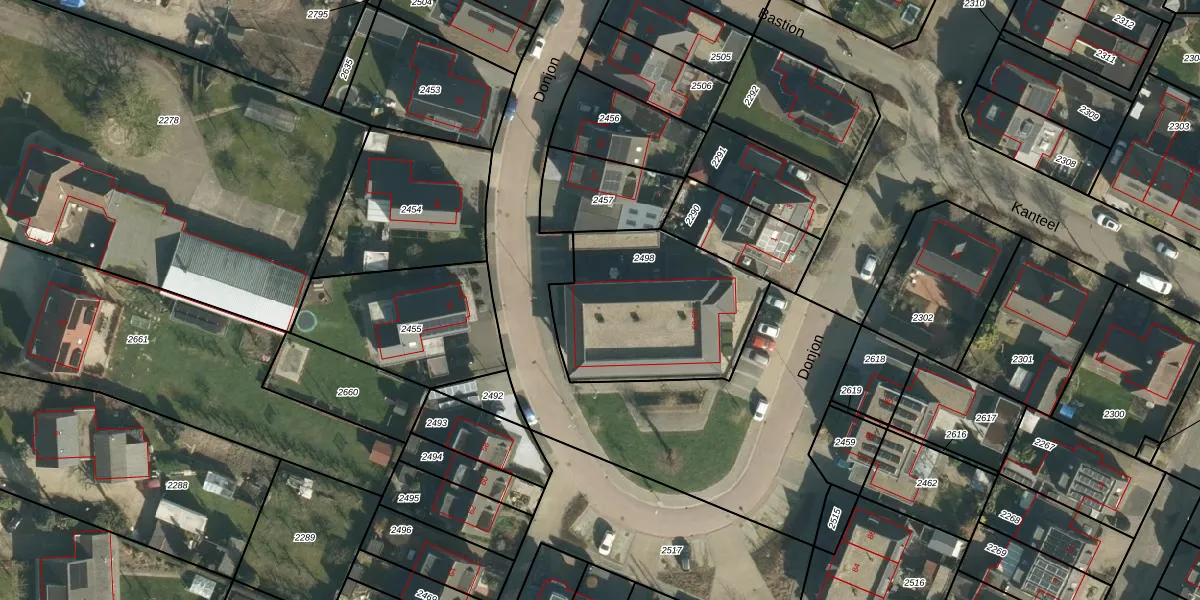 Het perceel waarop Donjon 65 staat heeft een oppervlakte van 732 m². Dit is een groot perceel. De perceeloppervlakte wordt geregistreerd door het Kadaster. Gedetailleerde informatie over de maten van dit perceel kunt u vinden in het rapport Kadastrale kaart met maatvoering van Donjon 65.