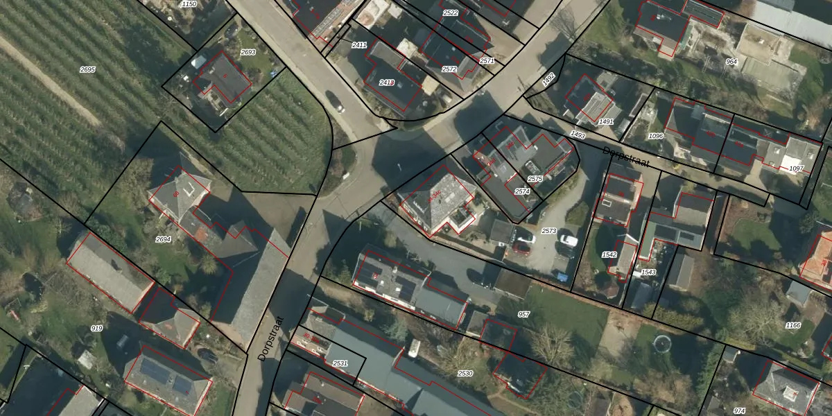 Het perceel waarop Dorpstraat 34 staat heeft een oppervlakte van 909 m². Dit is een groot perceel. De perceeloppervlakte wordt geregistreerd door het Kadaster. Gedetailleerde informatie over de maten van dit perceel kunt u vinden in het rapport Kadastrale kaart met maatvoering van Dorpstraat 34.