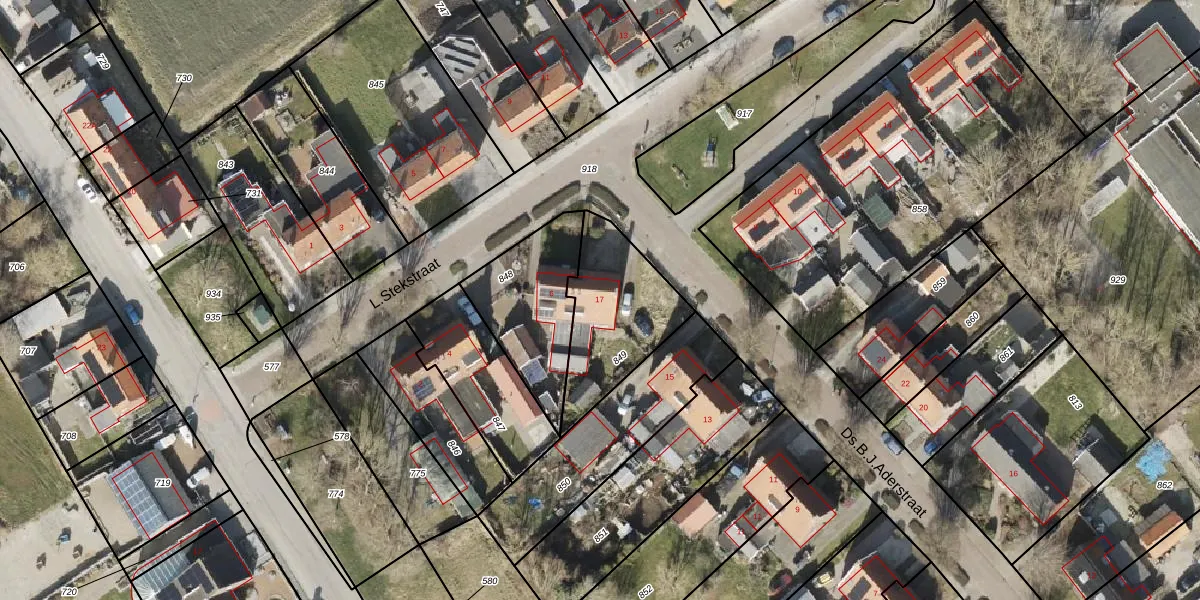 Ds.B.J.Aderstraat 17 is gelegen op kadastraal perceel BTA00C849. Deze kadastrale aanduiding is uniek en wordt gebruikt door het Kadaster om eigendomsrechten en andere zakelijke rechten vast te leggen. Het perceel maakt onderdeel uit van de kadastrale gemeente Beerta.