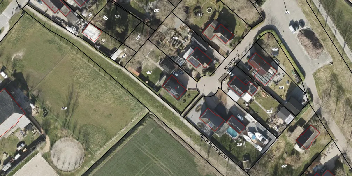 Het perceel waarop Kroonborg 8 staat heeft een oppervlakte van 839 m². Dit is een groot perceel. De perceeloppervlakte wordt geregistreerd door het Kadaster. Gedetailleerde informatie over de maten van dit perceel kunt u vinden in het rapport Kadastrale kaart met maatvoering van Kroonborg 8.