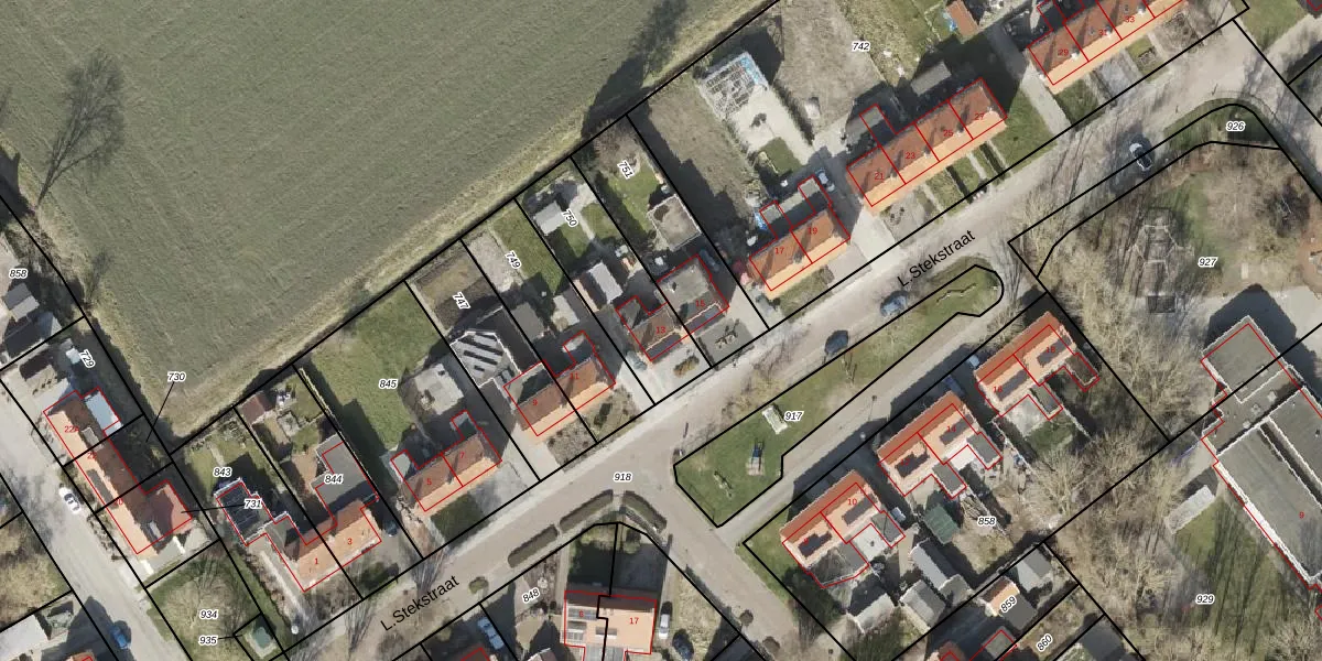 Gebruik de zoekbalk of klik op een perceel voor informatie over de adressen binnen dit perceel.
