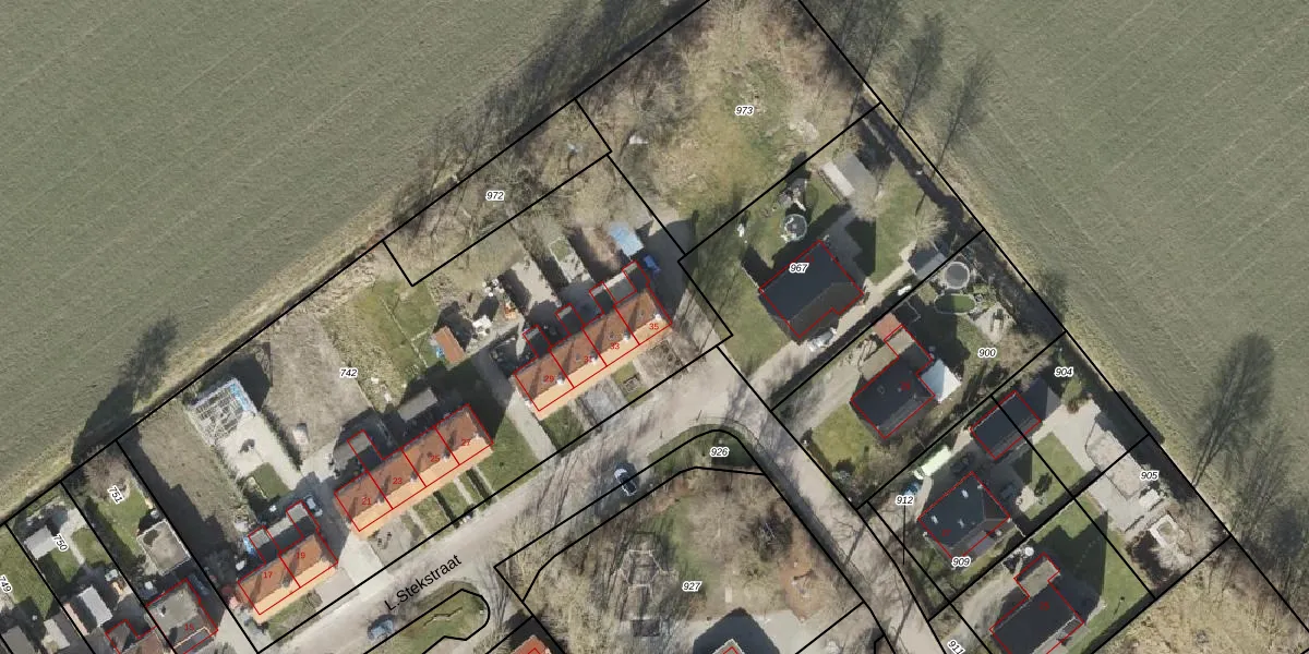 Het perceel waarop L.Stekstraat 35 staat heeft een oppervlakte van 3310 m². Dit is een zeer groot perceel. De perceeloppervlakte wordt geregistreerd door het Kadaster. Gedetailleerde informatie over de maten van dit perceel kunt u vinden in het rapport Kadastrale kaart met maatvoering van L.Stekstraat 35.