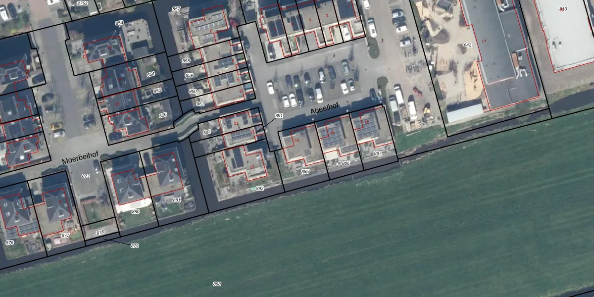 Gebruik de zoekbalk of klik op een perceel voor informatie over de adressen binnen dit perceel.
