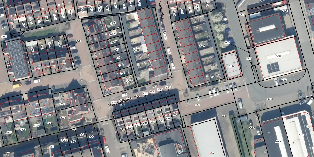Beukenlaan 16 is gelegen op kadastraal perceel WDE02A2635. Deze kadastrale aanduiding is uniek en wordt gebruikt door het Kadaster om eigendomsrechten en andere zakelijke rechten vast te leggen. Het perceel maakt onderdeel uit van de kadastrale gemeente Lange Ruige Weide.