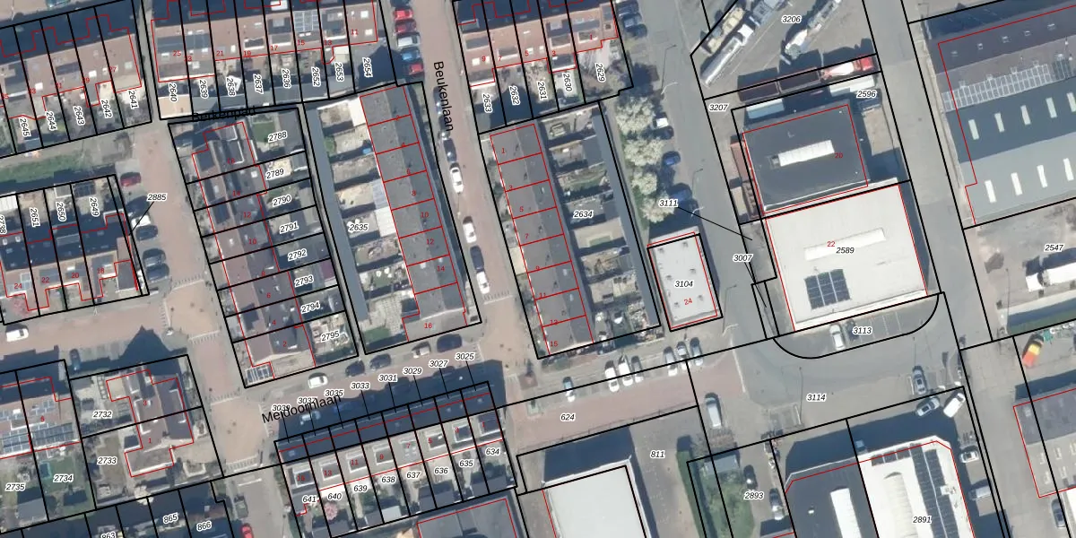 Beukenlaan 9 is gelegen op kadastraal perceel WDE02A2634. Deze kadastrale aanduiding is uniek en wordt gebruikt door het Kadaster om eigendomsrechten en andere zakelijke rechten vast te leggen. Het perceel maakt onderdeel uit van de kadastrale gemeente Lange Ruige Weide.