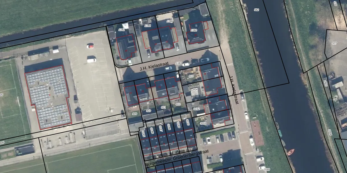 J.H. Kielastraat 21 is gelegen op kadastraal perceel RWK02M912. Deze kadastrale aanduiding is uniek en wordt gebruikt door het Kadaster om eigendomsrechten en andere zakelijke rechten vast te leggen. Het perceel maakt onderdeel uit van de kadastrale gemeente Reeuwijk.
