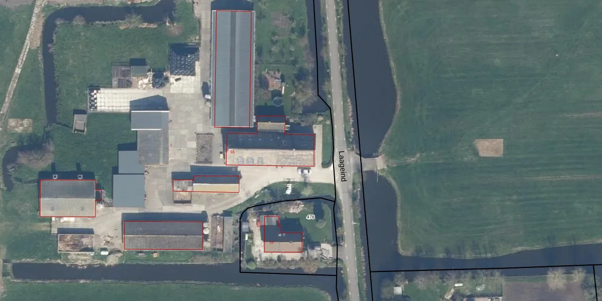 Het perceel waarop Laageind 55 staat heeft een oppervlakte van 6,1 ha. Dit is een zeer groot perceel. De perceeloppervlakte wordt geregistreerd door het Kadaster. Gedetailleerde informatie over de maten van dit perceel kunt u vinden in het rapport Kadastrale kaart met maatvoering van Laageind 55.