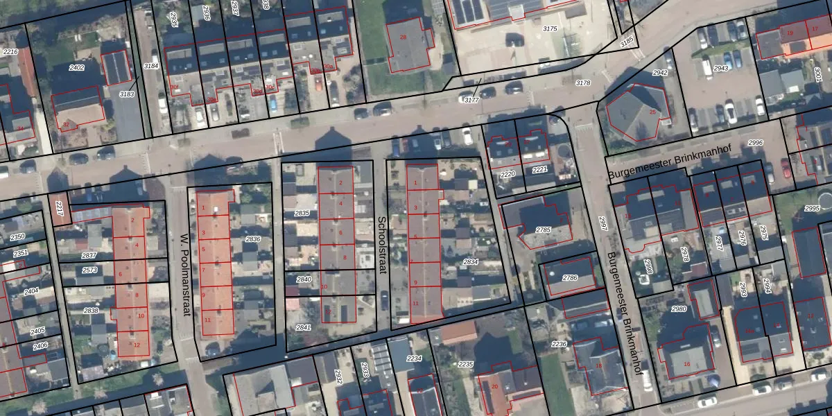 Schoolstraat 3 is gelegen op kadastraal perceel WDE02A2834. Deze kadastrale aanduiding is uniek en wordt gebruikt door het Kadaster om eigendomsrechten en andere zakelijke rechten vast te leggen. Het perceel maakt onderdeel uit van de kadastrale gemeente Lange Ruige Weide.