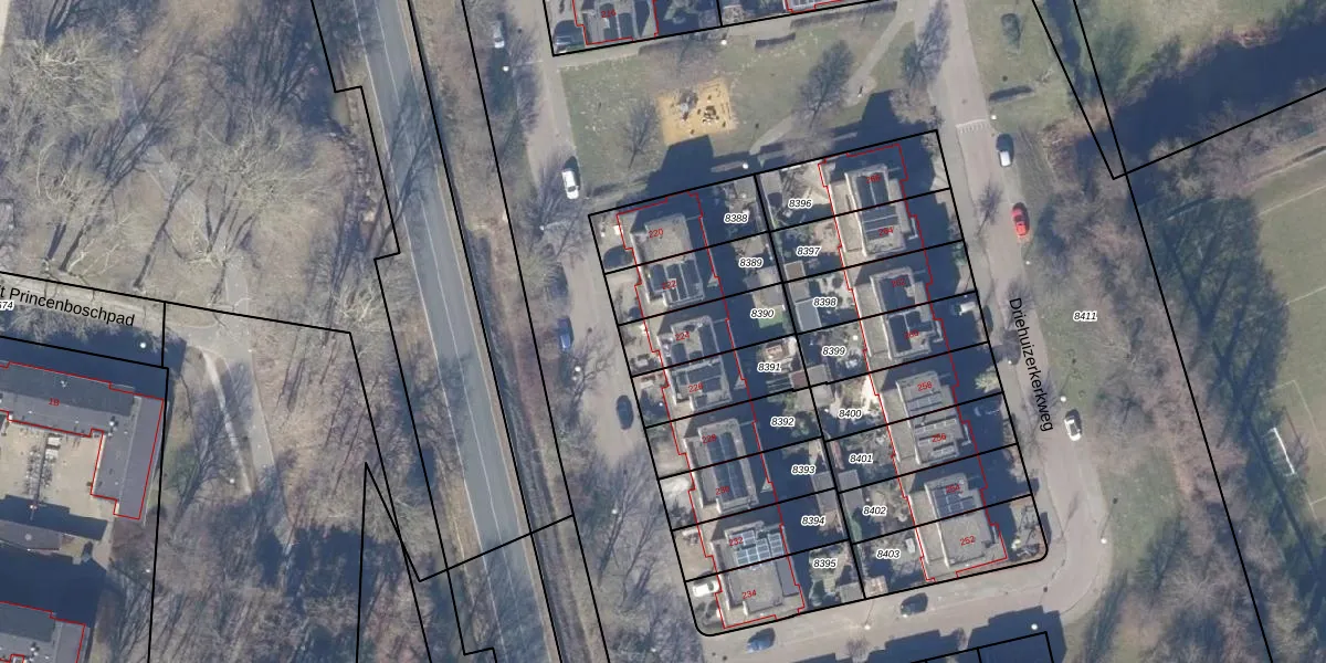 Gebruik de zoekbalk of klik op een perceel voor informatie over de adressen binnen dit perceel.