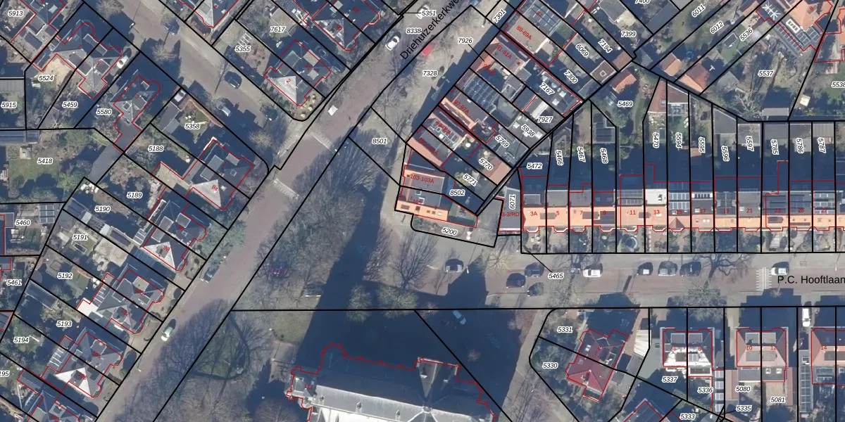 P.C. Hooftlaan 1 is gelegen op kadastraal perceel VSN01H5200. Deze kadastrale aanduiding is uniek en wordt gebruikt door het Kadaster om eigendomsrechten en andere zakelijke rechten vast te leggen. Het perceel maakt onderdeel uit van de kadastrale gemeente Velsen.