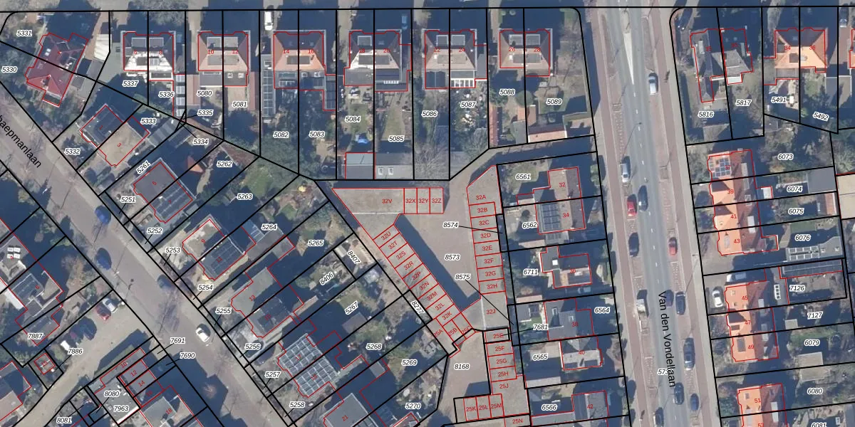Van den Vondellaan 32-Y is gelegen op kadastraal perceel VSN01H8573. Deze kadastrale aanduiding is uniek en wordt gebruikt door het Kadaster om eigendomsrechten en andere zakelijke rechten vast te leggen. Het perceel maakt onderdeel uit van de kadastrale gemeente Velsen.