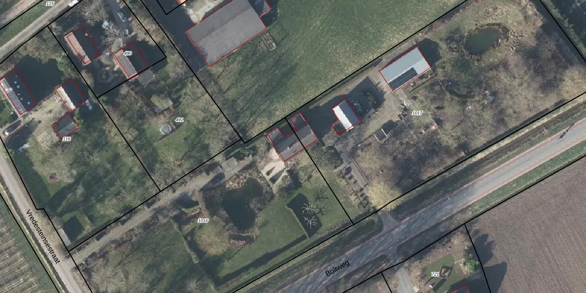 Het perceel waarop Boltweg 7 staat heeft een oppervlakte van 3625 m². Dit is een zeer groot perceel. De perceeloppervlakte wordt geregistreerd door het Kadaster. Gedetailleerde informatie over de maten van dit perceel kunt u vinden in het rapport Kadastrale kaart met maatvoering van Boltweg 7.