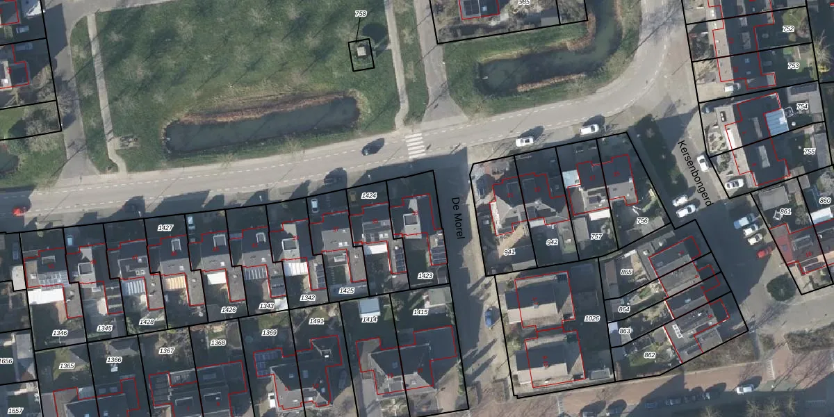 Het adres is gelegen op perceel 1423 in de sectie O en de kadastrale gemeente Heteren. De kadastrale aanduiding is aldus HTR00-O-1423. De gemiddelde perceelgrootte in Heteren is 5528,63 m². Dit perceel is kleiner: de perceeloppervlakte bedraagt 294 m². Het grootste perceel in de kadastrale gemeente is 55,5 ha. Het kleinste perceel heeft een oppervlakte van 1 m². Dit is het enige adres dat aanwezig is op het perceel. De laatste wijziging in het de Basisregistratie Kadaster (BRK) was op 24-02-2011.