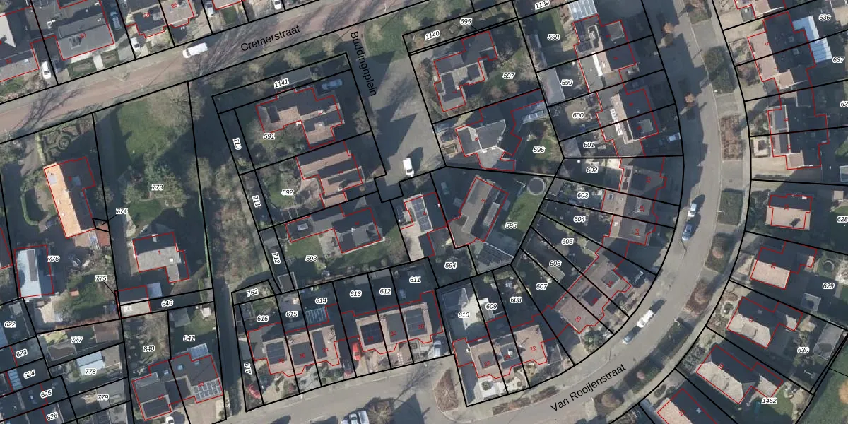 Gebruik de zoekbalk of klik op een perceel voor informatie over de adressen binnen dit perceel.