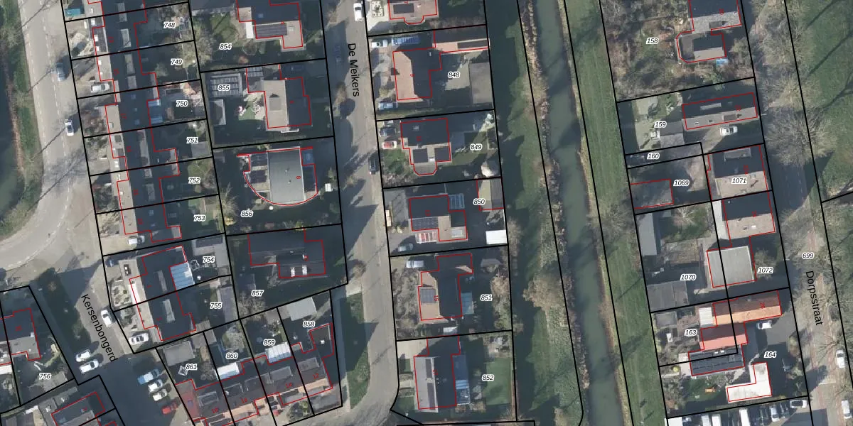 Gebruik de zoekbalk of klik op een perceel voor informatie over de adressen binnen dit perceel.