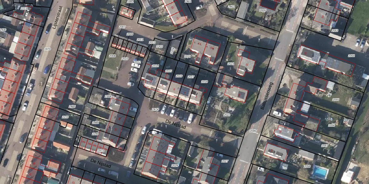 Gebruik de zoekbalk of klik op een perceel voor informatie over de adressen binnen dit perceel.