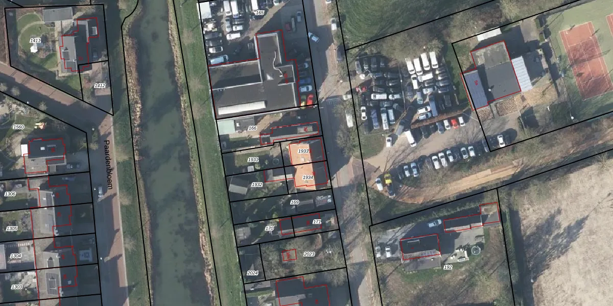 Het adres is gelegen op perceel 1933 in de sectie O en de kadastrale gemeente Heteren. De kadastrale aanduiding is aldus HTR00-O-1933. Het perceel is 122 m² groot. Dat is kleiner dan de gemiddelde perceeloppervlakte in Heteren, dat op 5527,57 m² ligt. De grootste perceeloppervlakte in de kadastrale gemeente is 55,5 ha. De kleinste oppervlakte bedraagt 1 m². Dit is het enige adres dat aanwezig is op het perceel. De laatste wijziging in het de Basisregistratie Kadaster (BRK) was op 28-02-2017.