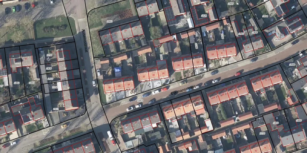 Het perceel waarop Eijkmansstraat 20 staat heeft een oppervlakte van 2774 m². Dit is een zeer groot perceel. De perceeloppervlakte wordt geregistreerd door het Kadaster. Gedetailleerde informatie over de maten van dit perceel kunt u vinden in het rapport Kadastrale kaart met maatvoering van Eijkmansstraat 20.