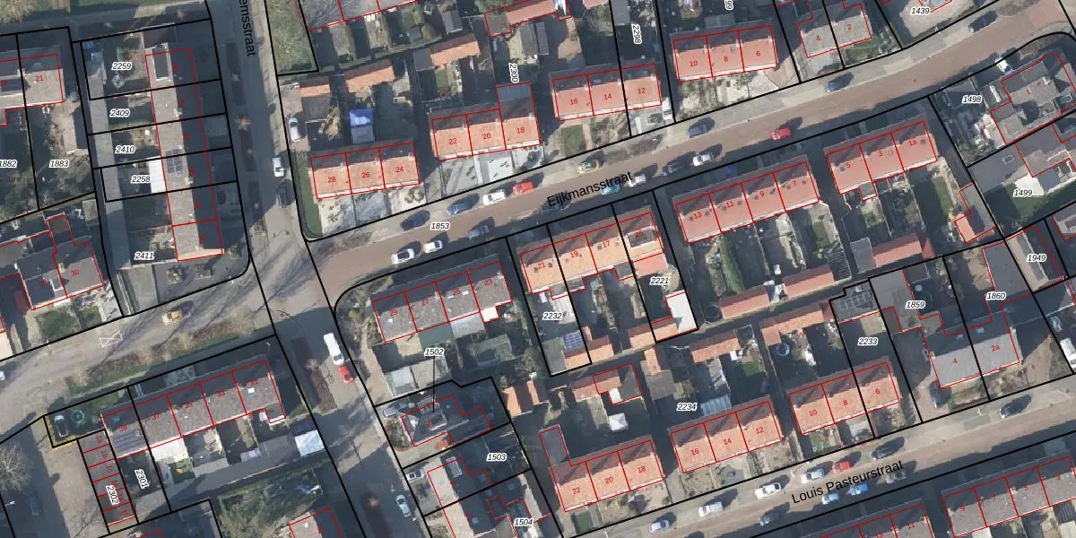 Gebruik de zoekbalk of klik op een perceel voor informatie over de adressen binnen dit perceel.