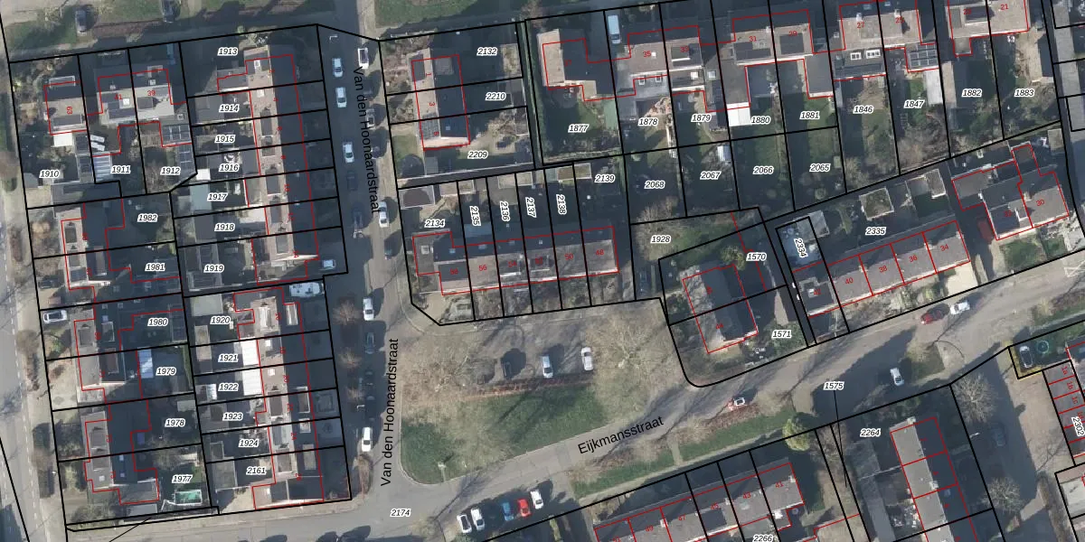 Gebruik de zoekbalk of klik op een perceel voor informatie over de adressen binnen dit perceel.