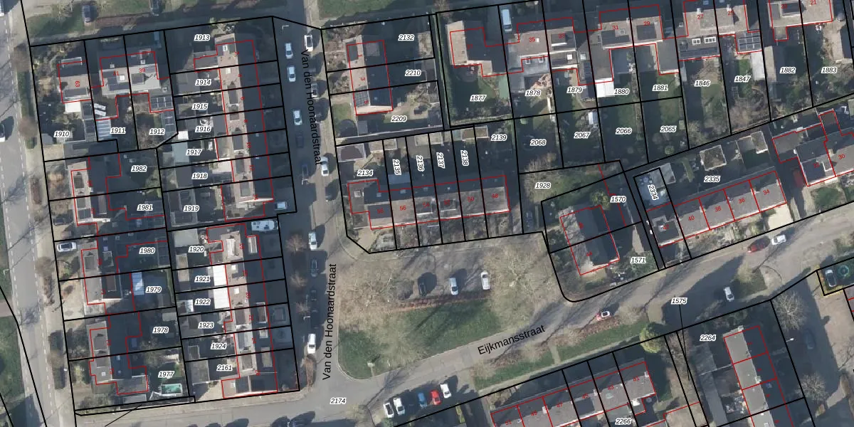 Het perceel waarop Eijkmansstraat 54 staat heeft een oppervlakte van 142 m². Dit is een middelgroot perceel. De perceeloppervlakte wordt geregistreerd door het Kadaster. Gedetailleerde informatie over de maten van dit perceel kunt u vinden in het rapport Kadastrale kaart met maatvoering van Eijkmansstraat 54.