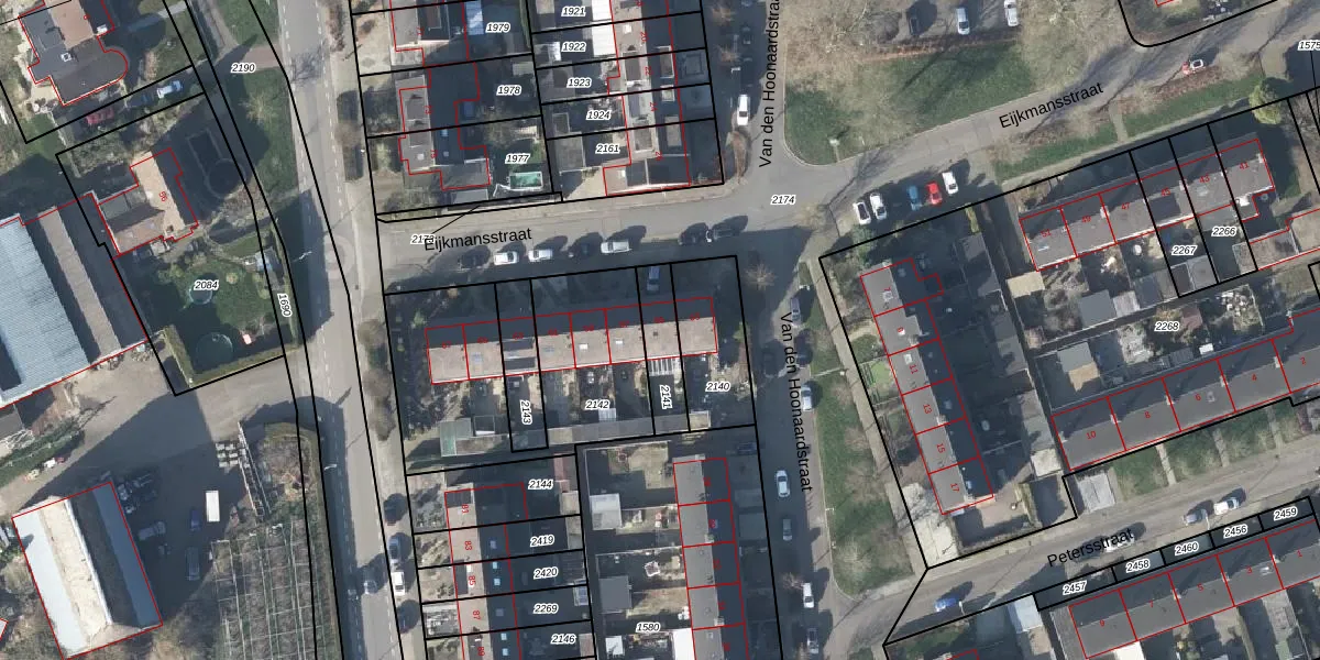 Het perceel waarop Eijkmansstraat 55 staat heeft een oppervlakte van 142 m². Dit is een middelgroot perceel. De perceeloppervlakte wordt geregistreerd door het Kadaster. Gedetailleerde informatie over de maten van dit perceel kunt u vinden in het rapport Kadastrale kaart met maatvoering van Eijkmansstraat 55.