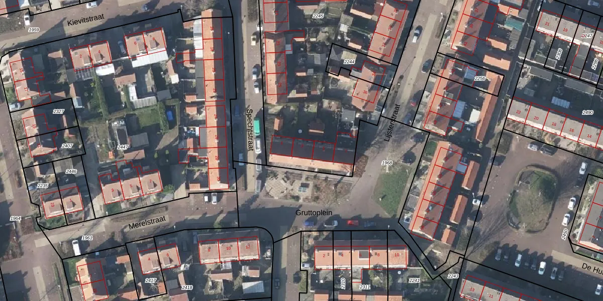 Het perceel waarop Gruttoplein 3 staat heeft een oppervlakte van 4850 m². Dit is een zeer groot perceel. De perceeloppervlakte wordt geregistreerd door het Kadaster. Gedetailleerde informatie over de maten van dit perceel kunt u vinden in het rapport Kadastrale kaart met maatvoering van Gruttoplein 3.